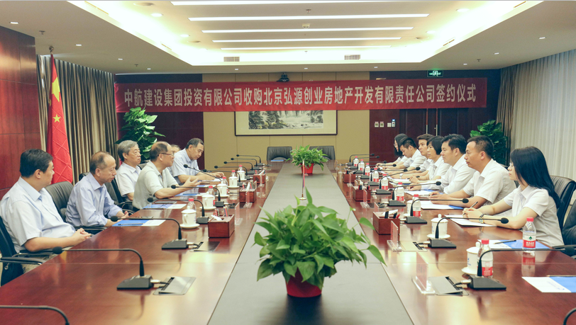 7月8日上午11時,中航建設集團投資有限公司與北京九源實業發展有限公司,就收購北京弘源創業房地產開發有限責任公司股權事宜在集團公司總部會議室舉行簽約儀式。
