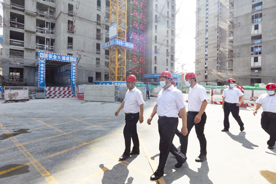 8月7日,頂著炎炎烈日,集團公司黨委書記、董事長陳先瑞親赴我公司承建的通州懷柔項目一線工地,現場視察指導工作,并代表集團公司看望慰問戰斗在一線的廣大員工。合約預算部部長孫佳和項目負責人陪同視察。