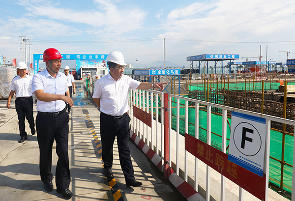 田董事長一行到達項目現場后,詳細了解詢問了項目在建情況和施工進度,并對工程進展情況及項目建設者揮灑汗水的辛勤付出給予充分肯定,勉勵大家克服困難、再接再厲、不辭勞苦的把項目建設好。