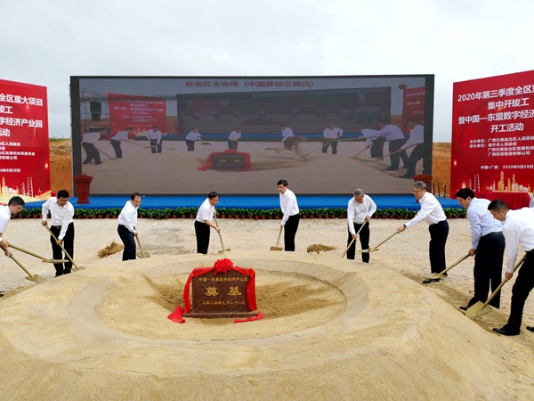 9月28日上午,中國—東盟數(shù)字經(jīng)濟(jì)產(chǎn)業(yè)園開工活動在廣西壯族自治區(qū)南寧市舉行,廣西壯族自治區(qū)黨委常委、常務(wù)副主席秦如培出席儀式并宣布項目開工。自治區(qū)副主席劉宏武,自治區(qū)政府副秘書長黃勝杰,自治區(qū)發(fā)改委副主任潘巍,南寧市政府副市長朱會東,廣投集團(tuán)黨委書記、董事長周煉,自治區(qū)大數(shù)據(jù)發(fā)展局副局長吳志偉,數(shù)字廣西集團(tuán)執(zhí)行總裁、廣西數(shù)字經(jīng)濟(jì)生態(tài)產(chǎn)業(yè)公司董事長靳芳,集團(tuán)公司黨委書記、董事長陳先瑞共同出席活動并為項目奠基培土。