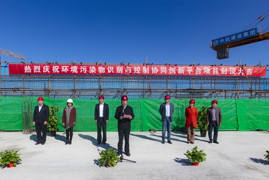 伴隨著最后一方混凝土澆筑到位,環境污染物識別與控制協同創新平臺項目喜封金頂。儀式結束后,各位領導深入現場仔細查看了項目主體結構,對下一步工作做進一步部署規劃。
