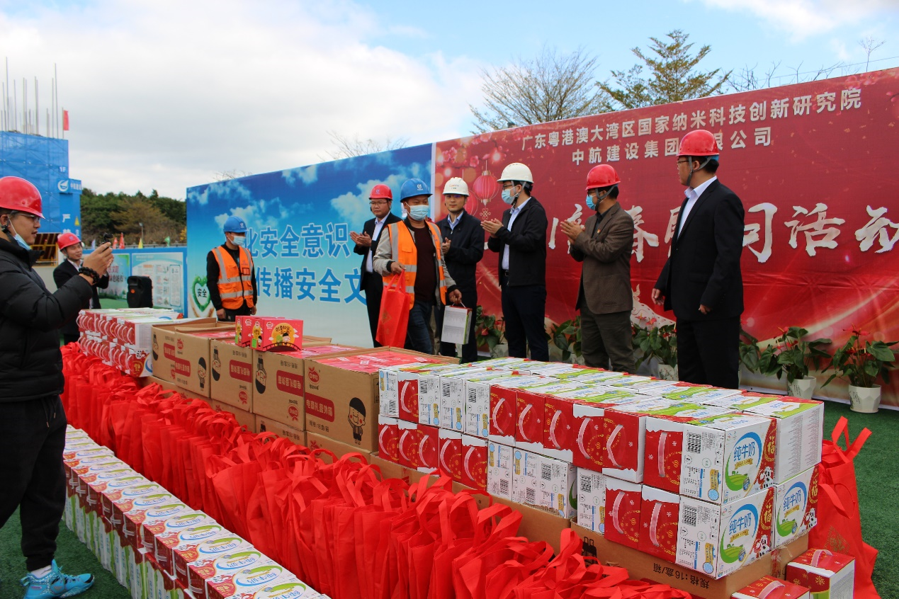 大年三十鬧新春,生產一線迎新年。為響應地方政府“留穗過年”的號召,2021年2月11日,中航建設集團南方工程有限公司聯合廣州市黃埔區魚珠街道辦事處、廣州納米產業投資有限公司、廣州珠江工程建設監理有限公司,組織開展“2021新春慰問活動”。
