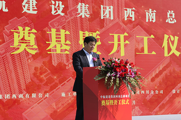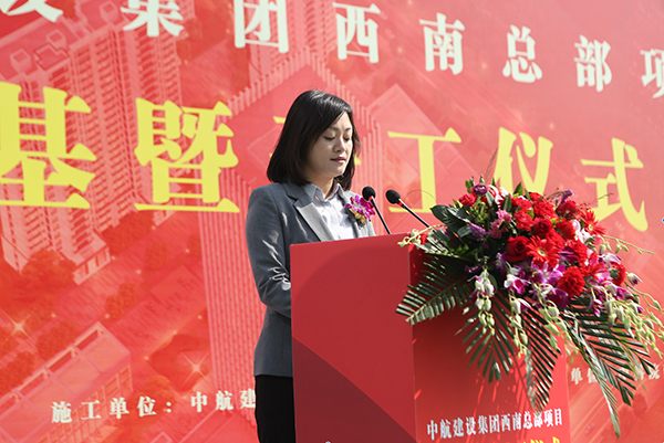 新都區副區長彭茚對西南總部開工表示熱烈祝賀。她表示項目開工是雙方合作共贏的良好開端,期待在更寬領域、更深層次開展合作,共謀新發展、共創新輝煌!新都區將一如既往地為項目建設和企業發展營造優越環境、提供周到服務,力爭把中航建設集團西南總部建設成為航空產業總部經濟的標桿!