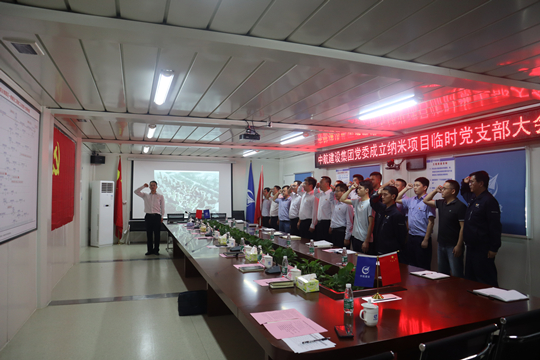 授旗儀式上,王建紅副書記將輾轉于集團總部、革命老區井岡山的臨時黨支部旗幟莊嚴地交到項目臨時黨支部書記招國樑手中,與項目部全體黨員重溫了入黨誓詞。