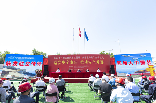 為深入貫徹全國第20個安全生產月“落實安全責任,推動安全發展”主題要求,提升建筑施工安全生產意識,強化安全預防措施,防范遏制重特大事故發生,6月1日上午,懷柔區建筑施工領域“安全生產月”活動正式啟動,儀式在集團公司承建的陳各莊集體土地租賃住房項目現場舉行。懷柔區住建委、區應急管理局相關領導,懷柔區建筑施工領域部分項目總承包單位項目經理,監理、承建單位負責人近百人參加此次活動。北京市長城偉業投資開發有限公司副總經理鄭仲杰,中航建設集團常務副總經理陳清、副總經理高陽出席儀式。
