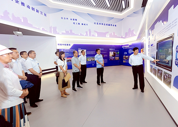 于新華副處長一行首先到集團(tuán)公司展廳參觀,對中航建設(shè)集團(tuán)發(fā)展歷程、產(chǎn)業(yè)項(xiàng)目概況、未來發(fā)展規(guī)劃以及黨建工作進(jìn)行全面了解。